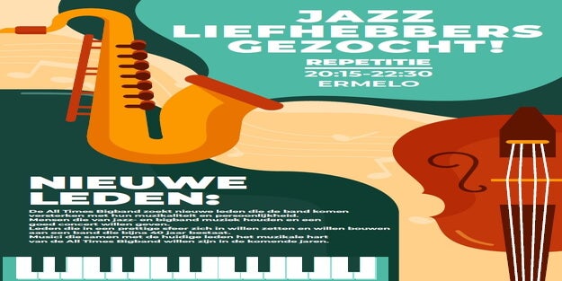 De All Times Bigband is de meest swingende bigband van de Veluwe! 17 muzikanten die samen bigbandmuziek uit verschillende periodes en stijlen spelen, 'Music of All Times'. Als het maar swingt! We geven concerten in regionale theaters, op feesten en partijen en op festivals/buitenpodia. Nieuwsgierig? Kom gerust eens luisteren op een woensdagavond in Harderwijk om kennis te maken!