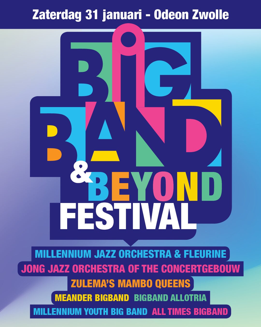 Deze middag en avond is Schouwburg Odeon de place to be voor liefhebbers van bigbandmuziek! Millenium Jazz Orchestra (MJO) organiseert de 1e editie van het Big Band & Beyond festival gewijd aan de rijke traditie én vernieuwing van bigbandmuziek. Het Festival biedt een podium aan het International Bigband Composition Contest (IBBCC) en een breed scala aan bands, van jeugdbigbands tot professionele ensembles.